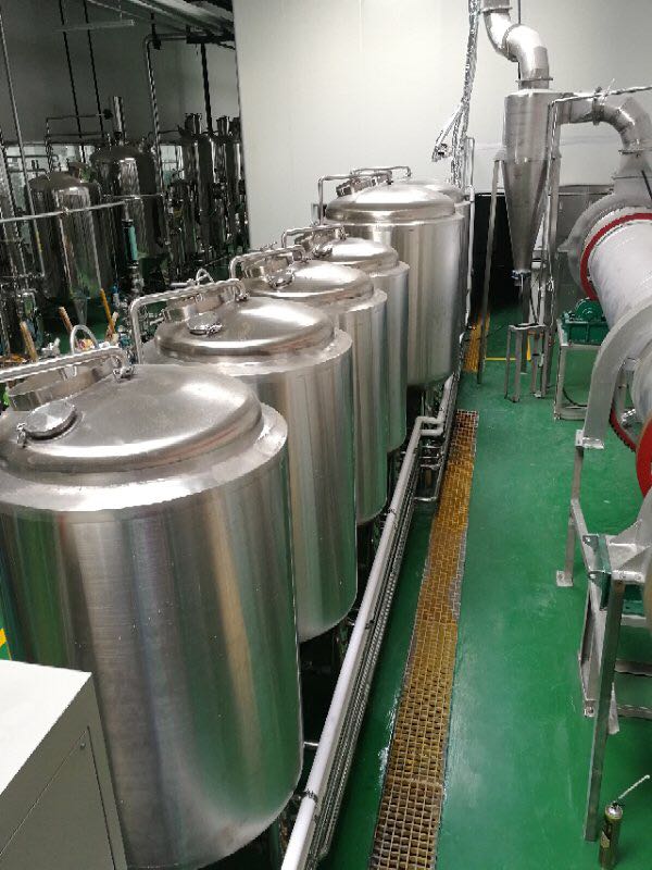 啤酒發(fā)酵系統(tǒng)有發(fā)酵罐、清酒罐、暫存罐組成;發(fā)酵是啤酒生產(chǎn)中極其重要的工藝過程。是一個有酵母參與的復雜的生化反應過程,發(fā)酵罐為錐底圓柱形,罐體具備自身冷卻裝置,可很容易地控制發(fā)酵溫度;罐底為錐形,回收酵母及清洗都很方便;罐體具有CIP清洗系統(tǒng),保證了生產(chǎn)中的衛(wèi)生安全。具備了先進的國際發(fā)酵工程技術,可采用PLC自動控溫技術。全過程控制啤酒發(fā)酵。